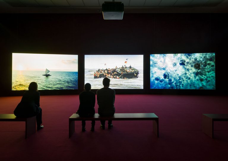 Verschlagwortet mit Ausstellungsaufbau, John Akomfrah, seccesion, Videoprojektion
