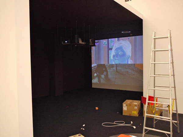 Aufbau in der Ausstellung Changing Channels, MUMOK 2010